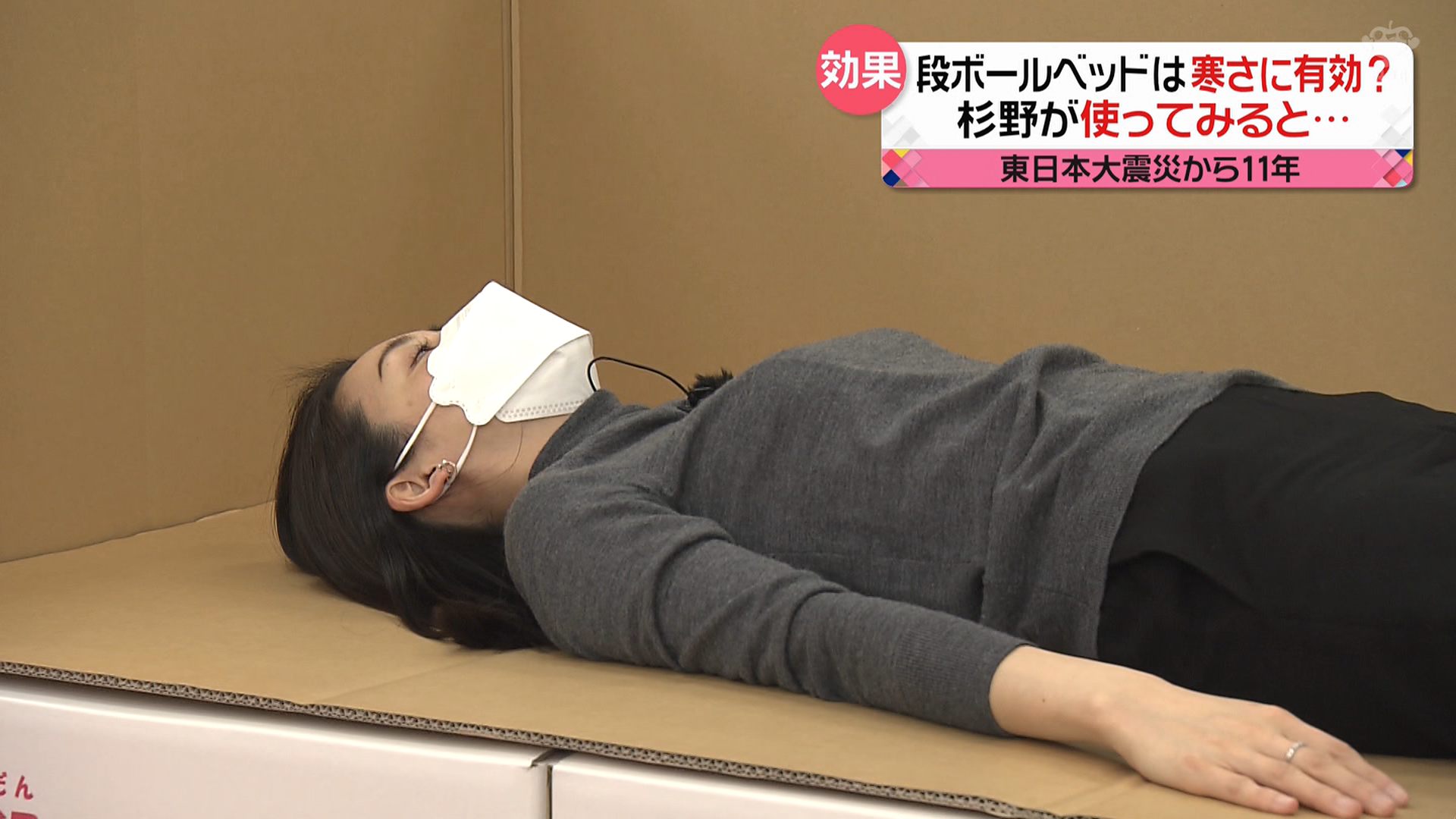 杉野真実アナ 段ボールベッドで豊乳がクッキリ!! 2022/3/13 アナきゃぷ速報 段ボールベッドをレポートした杉野真実アナが、豊乳が強調された衣装で寝そべっていました! [2022年3月12日 news every.サタデー] 続きを読む Source: アナきゃぷ速報